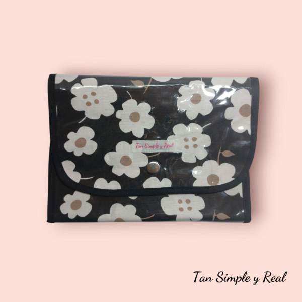 Cartuchera Plegable Flores Blancas/Negro