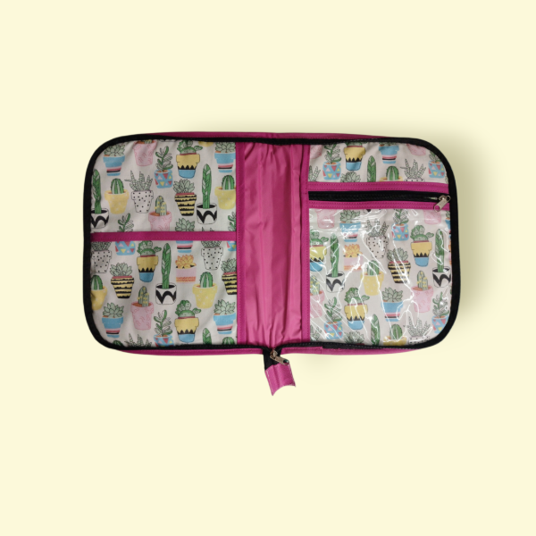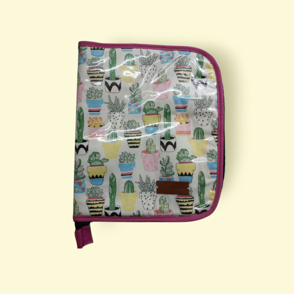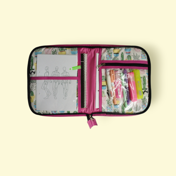 Organizador tamaño A5. Realizado en Gabardina, Silver en su interior y Nylon Cristal en su exterior. Tiene dos solapas internas, dos bolsillos (una con Cierre). Es acolchonada, y sirve para llevar agendas o cuadernilos tamaño A5, papeles, documentacion y hasta una tablet. Medidas abierta: alto 28cm x ancho 44cm.